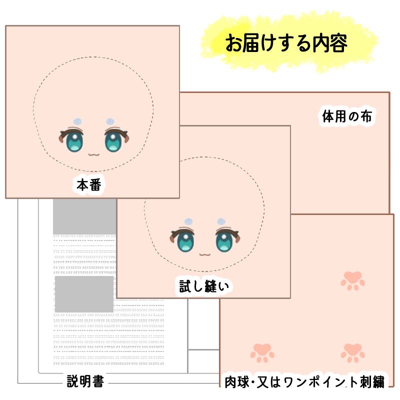 同時にぬいぐるみのデザインイラスト・又はセミオーダーのお顔画像に加筆したイラストをご用意下さい