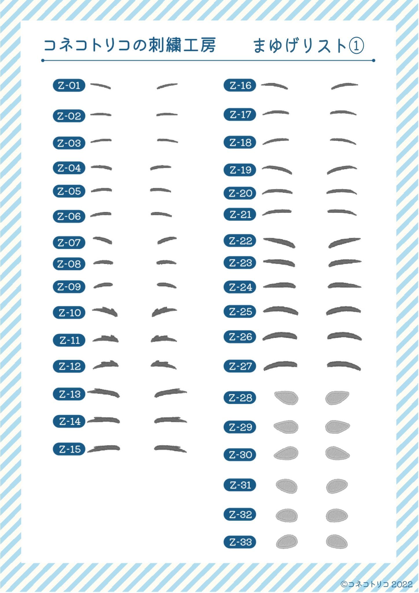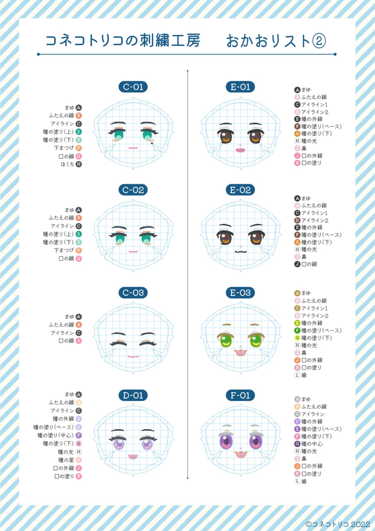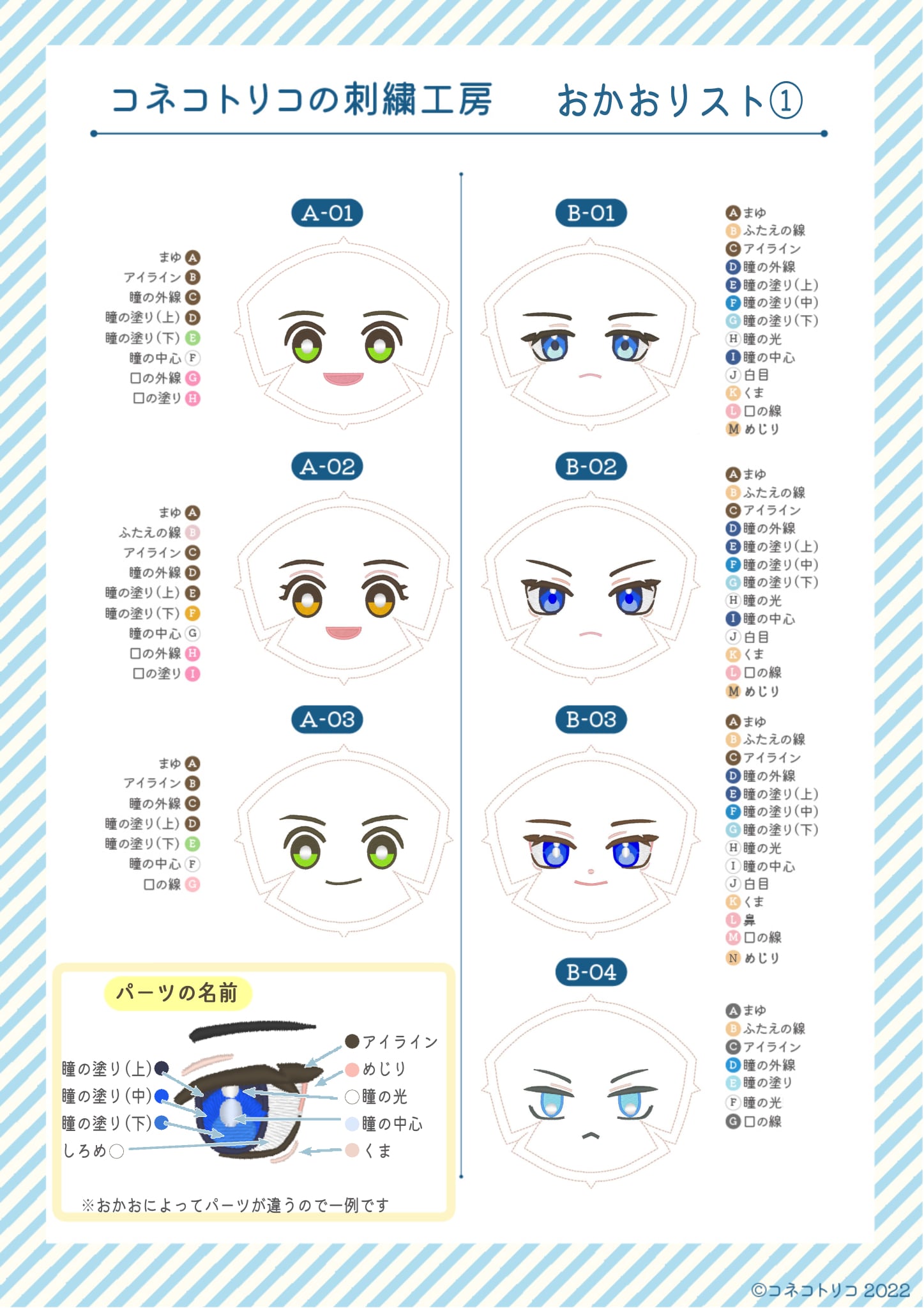 ・口、まゆげはオプションパーツ一覧の中からお好きなものに変更可能です。